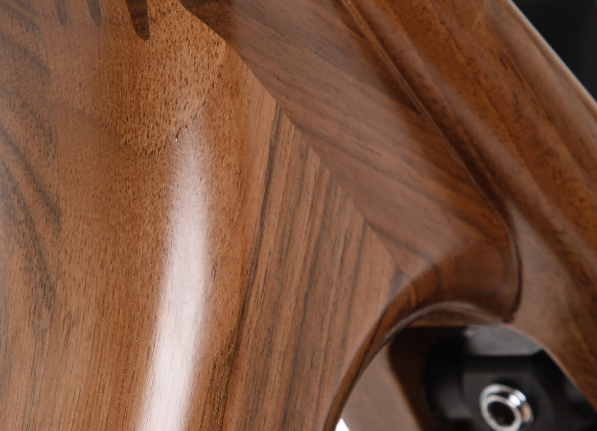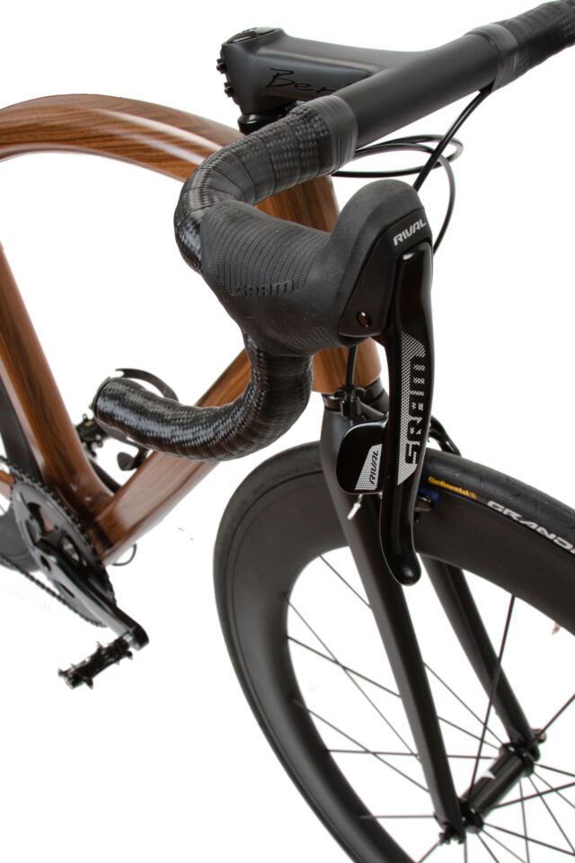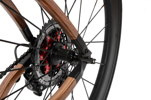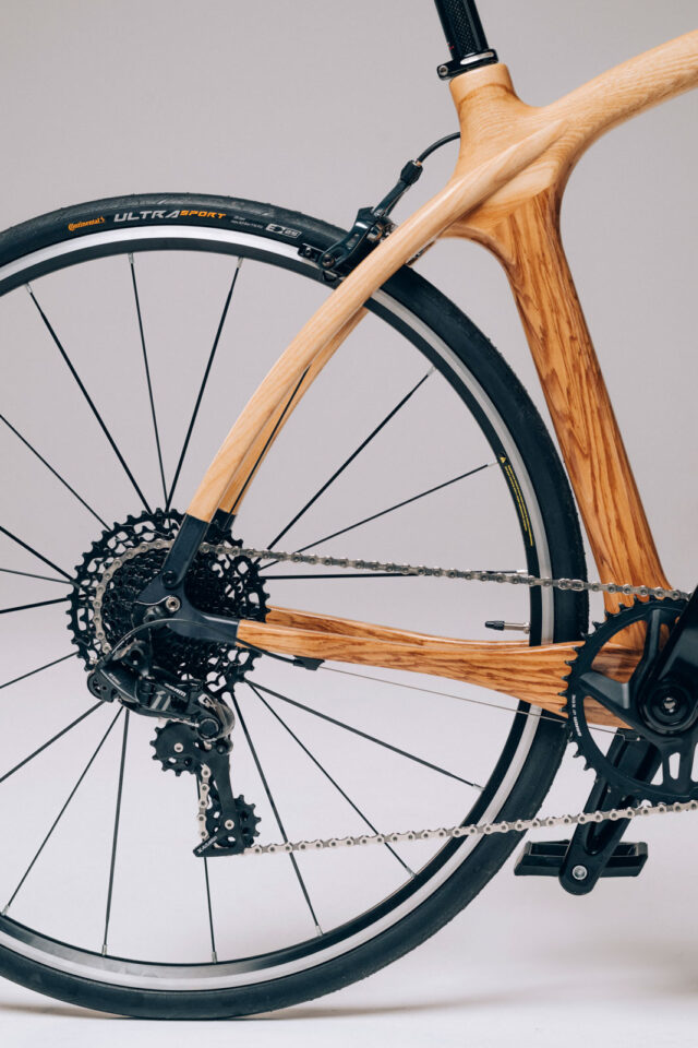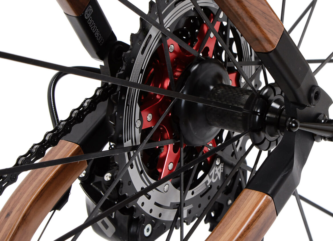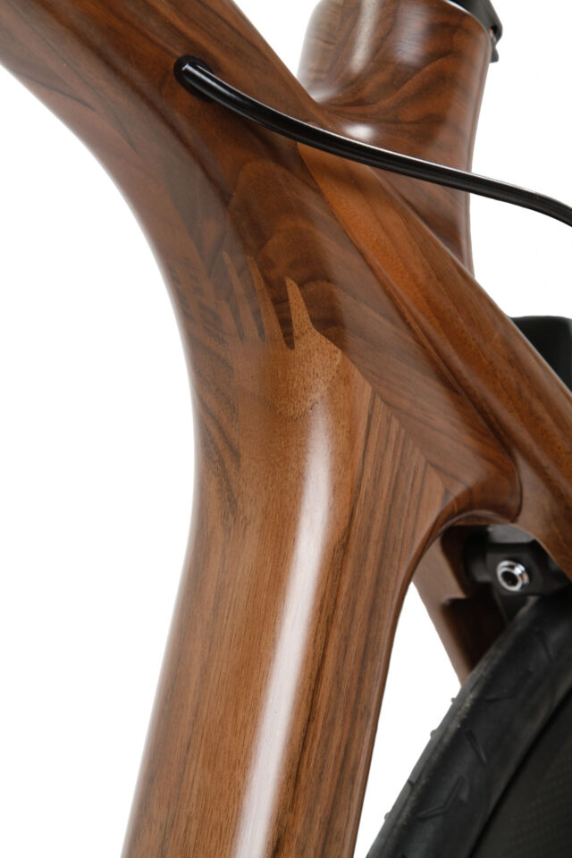 Ein Holzrahmen überrascht durch seine Leichtigkeit. Hohl konstruiert, bringt er bei höchster Stabilität knapp 2 kg auf die Waage. Das Gesamtgewicht des Bikes variiert je nach Holzart, Komponenten und Ausstattung – stets mit einem optimalen Verhältnis von Wandstärke und Gewicht, ohne Kompromisse bei der Stabilität.